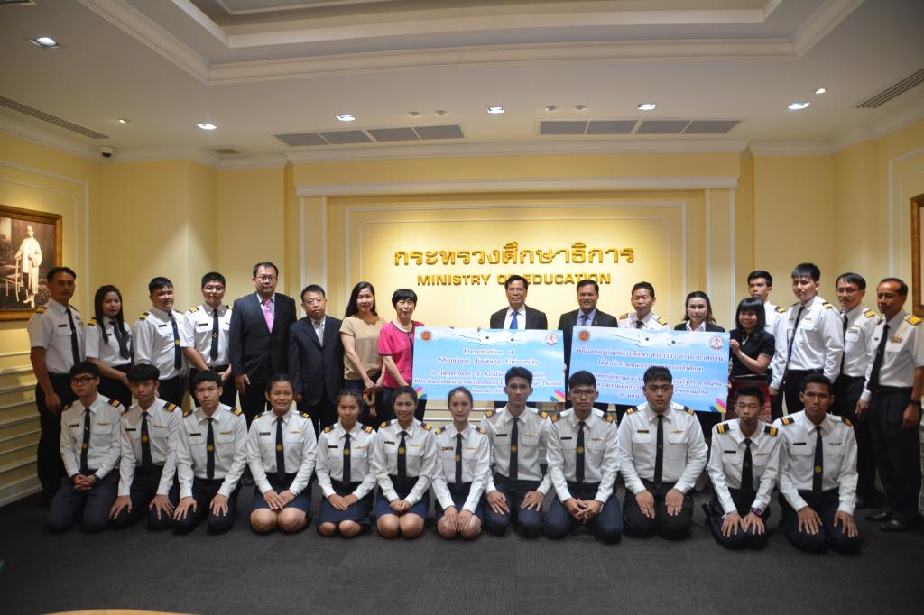 在孔敬工业社区教育学院,双方就进一步深化“山东交通-孔敬学院”专业建设、实验实训中心建设及泰方学生赴国内学习事宜进行了探讨。孙秀丽表示,“山东交通-孔敬学院”是山东交通学院的第五个校区,也是海外的第一个校区,现在我校已为泰国孔敬社区工业教育学院培养航空专业师资并构建课程体系、派教师在泰国校区进行专业授课、搭建教学实验平台,下一步将复制这一模式,在更多专业开展合作。随后,孙秀丽为15位即将来校读书的学生发放了入学通知书,为“山东交通-孔敬学院”航空实训中心落成剪彩。