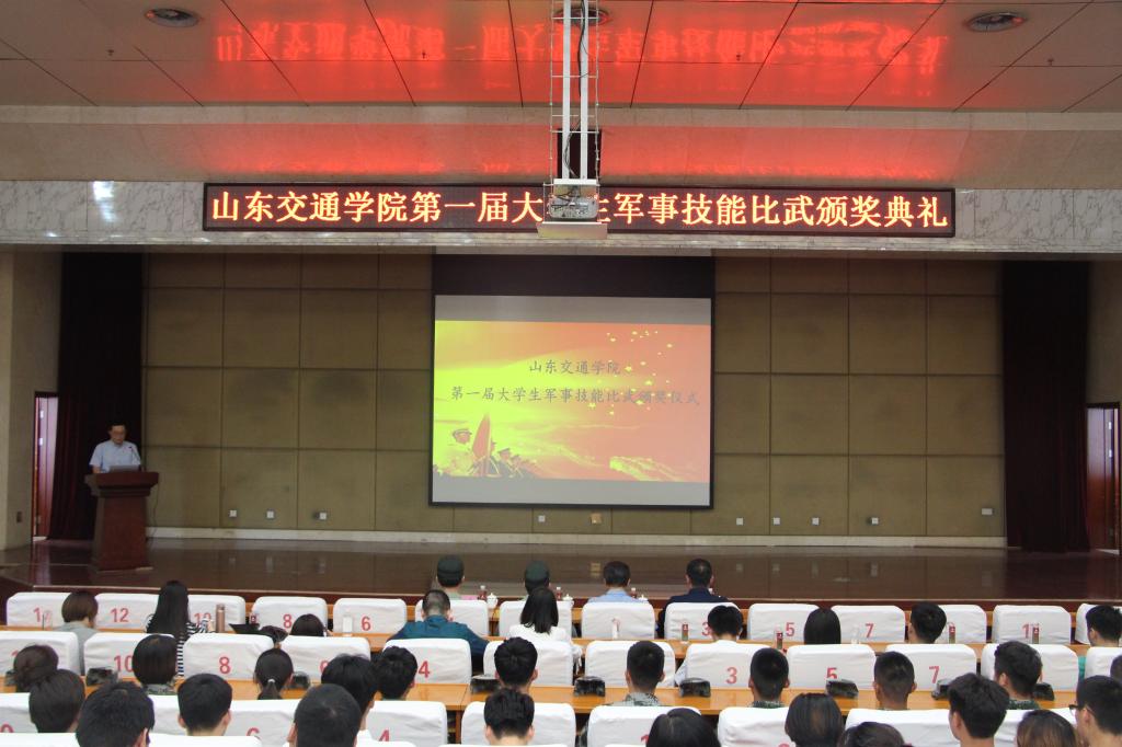 5月22日下午,学校在长清校区学术报告厅举行第一届军事技能比武颁奖典礼暨国防教育主题讲座。党委副书记唐勇,72463部队政委陈军出席活动。