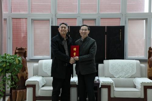 随后,鹿林为赵景祥颁发了聘任证书,聘任赵景祥为我校客座教授。