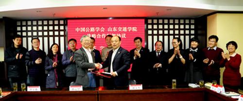 中国公路学会有关部门负责同志、我校交通土建工程学院、材料科学与工程学院、继续教育学院相关负责人和科研处相关人员参加了签约仪式。( 科研处 交通土建工程学院 文/李晋 图/华相纲)