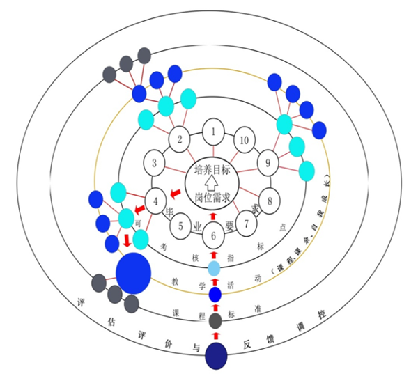 人才培养体系重构的起点是人才培养的目标定位。现实中,当我们深入人才市场中,调研人才需求状况时,到毕业生从业单位了解对毕业生的评价时,倾听毕业生的成长体验时,所听到的对人才的描述往往是一个综合的概念,不同的人会谈及不同的内容,如:具有扎实的理论基础、实践动手能力强、爱岗敬业、团结协作、工作踏实、作风严谨、创新意识、岗位职责等等,看起来都好像是对某一方面特征的笼统描述,而实际上却是对人才需求的真实感受;细细的分析这众多的特征,有些是对人的共性要求,有些则反映了人才需求的专业性性特征。如果我们深入的分析研究,并对其归纳总结,就可以概念出每一个专业人才需求的目标定位。由目标定位逆向分解,将蕴含于目标定位之中的各因素理清楚,并落实在实现途径中,就是人才培养体系的重构。