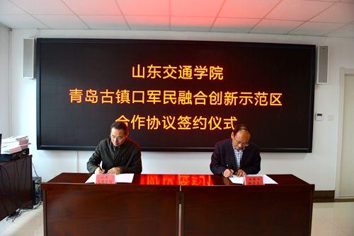 近日,院长鹿林与青岛古镇口军民融合创新示范区联席会议办公室党委书记、主任刘玮在青岛签署合作协议。学校副院长孙云早、原副院长顾一中出席,海运学院、信息科学与电气工程学院、航空学院、船舶与海洋工程学院负责同志参加活动。