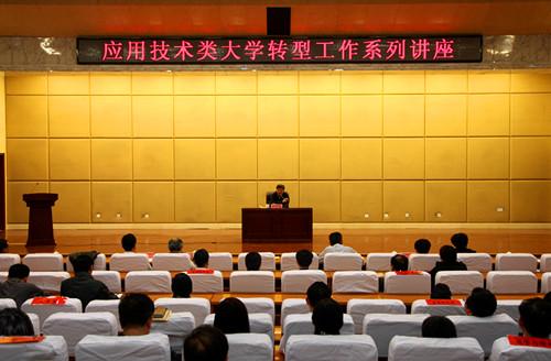 5月7日,金陵科技学院党委书记陈小虎来我校做了题为“地方高校转型与创建新型应用型本科院校”的专题讲座。学校领导孙秀丽、鹿林、张祖斌、唐勇、徐晓红、孙云早、陈松岩、王玉华出席报告会。大会由院长鹿林主持。我校科级以上干部、二级学院及各负责人共300余人参加了讲座。