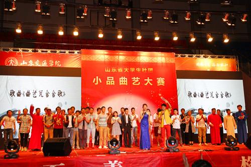 6月7日,由省委高校工委、团省委、省文化厅、省学联联合举办,我校承办的山东省大学生社团小品曲艺大赛在长清校区体育馆举行。团省委党组成员、纪检组长谢宁,学校党委书记孙秀丽出席本次活动,著名曲艺作家、评论家、国家一级编剧、中华曲艺学会副会长、山东省曲艺家协会主席孙立生,我国著名相声表演艺术家、国家一级演员刘广玺,著名青年相声表演艺术家大新,中华快板研究会秘书长、著名快板表演艺术家、中国曲艺家协会副主席连伟,中华快书研究会秘书长、著名山东快书表演艺术家东风等明星担任大赛评委。全省38所高校的79件作品参赛,我省各高校的500余名师生观看了比赛。