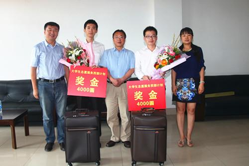 唐勇与两名志愿者进行了亲切的交谈,勉励他们珍惜去西部的机会,扎实工作,向基层学习、向实践学习、向群众学习;自觉树立迎难而上的勇气,在火热的实践中发挥才智,锻炼成长,在西部广阔的舞台上建功立业,为学校争光。他嘱咐志愿者时刻注意保重身体,并为他们颁发了奖金、赠送了旅行箱,祝福他们一路平安。