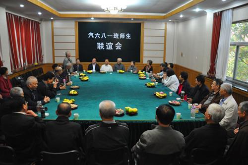 10月14日上午,我校无影山校区培训中心二楼会议室充满欢声笑语,室内坐满了花甲老人。我校汽681班校友在毕业分别45年后重返母校,共享重逢的温情。学校党委副书记张祖斌、副院长张诚出席活动。老教师代表吴际璋、韩佩峥、腾卫宾应邀参加活动。校友办负责同志参加活动。