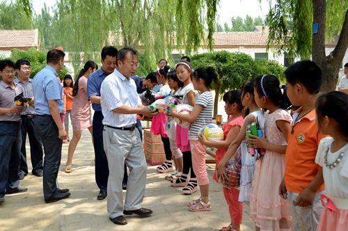 唐勇一行首先参观慰问了雷集镇马官屯村小学和幼儿园,观看了小学学生组织的庆六一歌舞表演并与学校师生进行了亲切交谈。随后,唐勇一行向雷集镇马官屯村小学等3个“第一书记”帮包村所在学校的小学生及幼儿园小朋友赠送了书包、铅笔盒等学习用品以及篮球、足球等体育器材,给帮包村的孩子们送去了节日祝福。举行捐赠活动的同时,我校校医院两位工作人员在活动现场为第一书记帮包村的小学生及村民现场讲解血型鉴定、血液常识等常识性问题,并开展了免费查血型活动,得到了第一书记帮包村的小学生及村民的积极响应,为当天爱心助学活动做了有力补充。