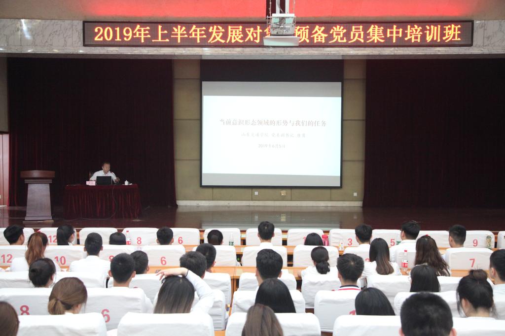 为全面贯彻落实习近平新时代中国特色社会主义思想和党的十九大精神,推进全面从严治党,进一步规范发展党员工作,保证新发展的党员质量,根据《中国共产党章程》《中国共产党发展党员工作细则》等规定和省委教育工委、学校党委关于发展对象预备党员培训工作有关要求,学校党校于6月3日至11日举办2019年上半年发展对象、预备党员集中培训班,全校537名学生、16名教工发展对象和预备党员参加培训。威海校区视频连线。