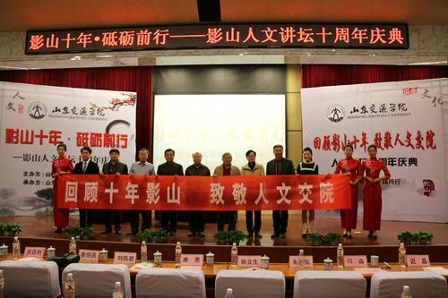 3月30日下午,“影山十年,砥砺前行”山东交通学院影山人文讲坛十周年庆祝活动在长清校区学术报告厅隆重举行。学校党委副书记、纪委书记唐勇出席活动。由影山人文讲坛观众遴选出的四位最受欢迎的嘉宾——中国诗歌学会副秘书长、著名诗人桑恒昌、“书画棋王”朱锡实、山东省曲艺家协会主席孙立生、山东大学历史文化学院书法文化研究所和骨刻文研究所所长、教授、博士生导师刘凤君应邀出席,团委负责同志、各学院(系)分团委(团总支)书记和辅导员参加了活动。