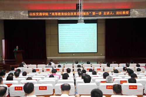 6月17日下午,学校在长清校区学术报告厅举办“高等教育综合改革系列报告会”第一讲,邀请了华中科技大学沈红教授作了题为“中国大学教师发展状况及反思”的专题报告。党委书记孙秀丽,院长鹿林,副院长徐晓红、孙云早、王玉华、李贞涛出席了报告会,威海校区通过视频连线参加了报告会,机关处室正科级及以上干部,各二级单位(部门)管理人员、副教授及以上教师、博士到场聆听。报告由孙云早主持。
