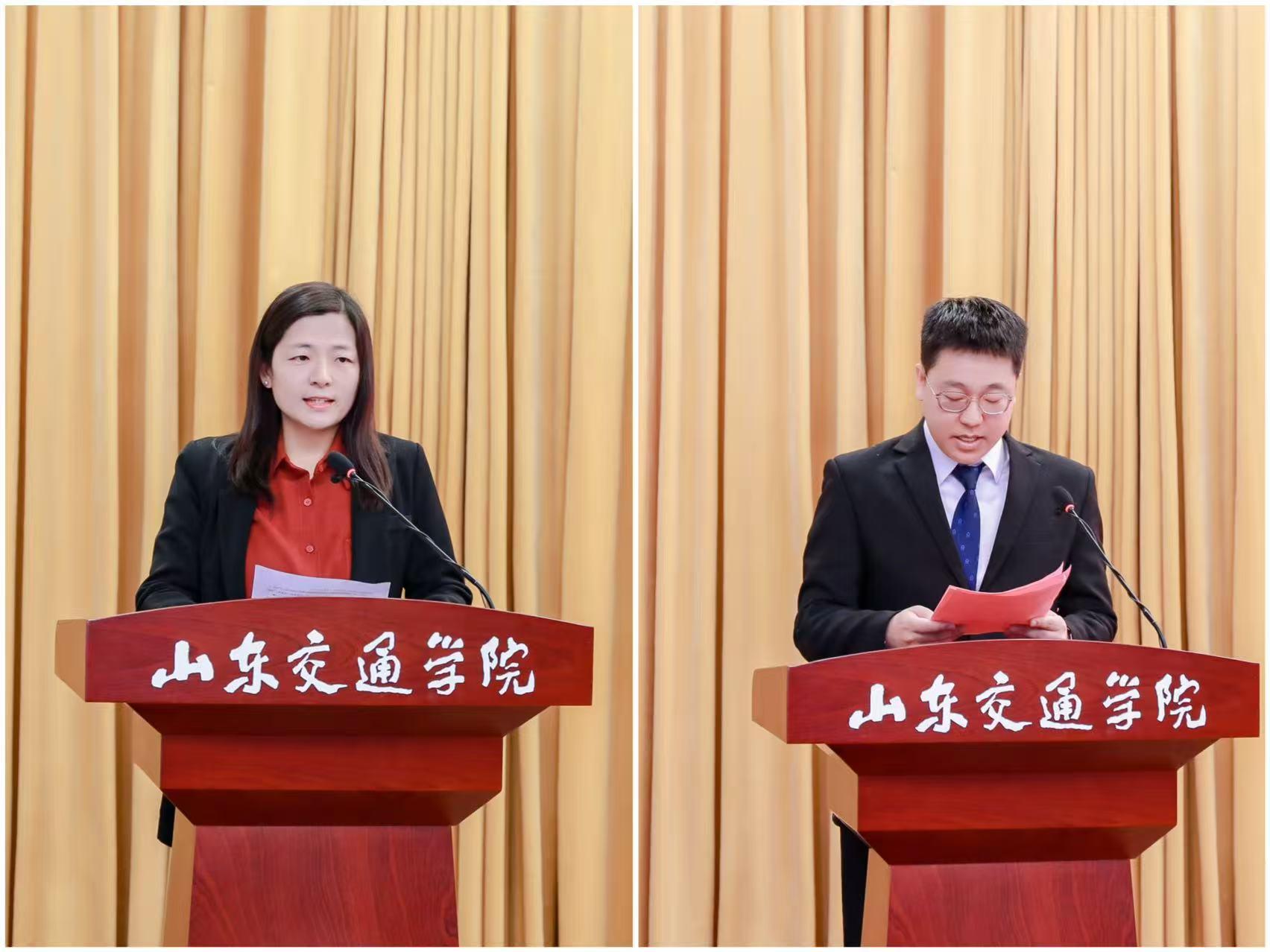 新生代表、交通运输专业学生吴作瑞发言,他结合济南轨道交通集团工作经历,讲述立足交通一线、为适应行业发展选择返校深造的初衷,表达对学校的信赖与对学习的期待。