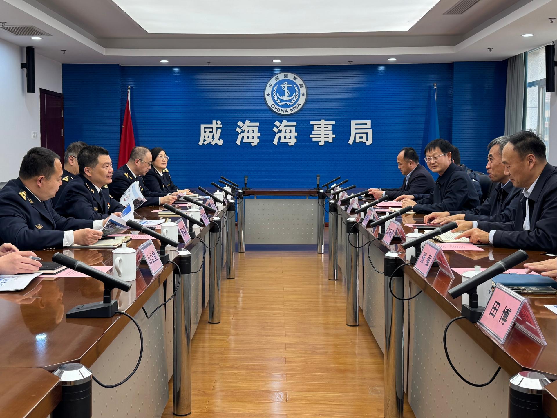 威海海事局领导班子成员及相关部门负责人,威海校区管理办公室、航运学院、基础教学部负责人参加座谈。