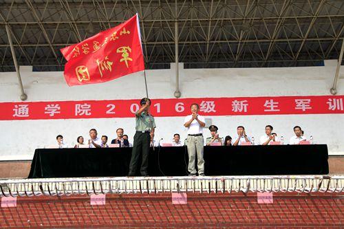 唐勇向军训团授团旗并做军训动员讲话,代表学校向承接本次军训任务的中国人民解放军72463部队表示衷心的感谢,并向全体官兵和2016级新生介绍了学 校的基本情况和改革发展进程。他要求全体参训学生要以饱满的热情、乐观的态度和坚强的毅力迎接军训中的各种挑战,圆满地完成军训任务,在军训阅兵式汇演时 以优异的表现为学校的60周年校庆献上一份振奋人心的贺礼!