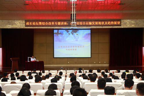 专题报告中,高洪涛结合自身实际,首先深入浅出、博采众长、图文并茂地回顾了我国及我省“十二五”综合运输发展情况,立足从国内外前沿和我国历史,介绍了综合交通的内涵与外延以及我国体制改革的演变;其次从现状、趋势两个维度,介绍了山东省路海空轨交通运输发展的总体状况并作出了评价;最后从全国、山东、交通内部、交通外部及国际发展趋势五个角度,对当前交通运输发展的形势进行了分析与判断。