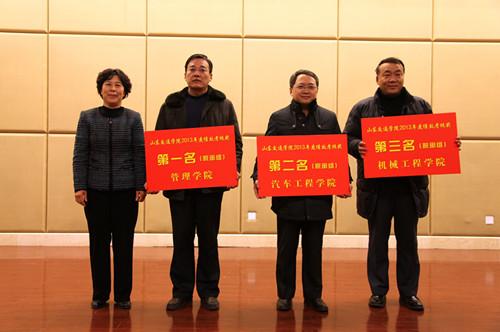 1月9日下午,为总结工作、表彰先进,学校在长清校区学术报告厅召开2013年度工作总结表彰大会。党委书记孙秀丽,院长鹿林,党委副书记张祖斌,党委副书记、纪委书记唐勇,副院长徐晓红、孙云早、顾一中、陈松岩、王玉华出席了会议。全体处级干部、教师代表和机关工作人员共计500余人参加了会议。会议由张祖斌主持。