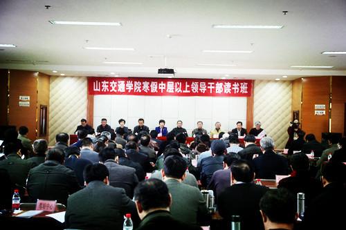 读书班期间,党委副书记张祖斌通报了学校教育实践活动整改落实情况;党委副书记、纪委书记唐勇做了廉政教育讲座;副院长孙云早、陈松岩、王玉华、顾一中分别结合自己外出学习研修情况做了学习交流;山东省交通运输厅综合规划处处长毕京建做了题为《山东交通发展规划与展望》的专题报告;集体学习了《关于坚持和完善普通高等学校党委领导下的校长负责制的实施意见》等文件;集中参观了学校典型实验室;集体观看了十八届四中全会精神学习辅导录像;并对2014年绩效考核工作进行了表彰。