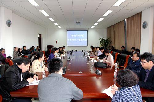 4月20日下午,学校在长清校区办公楼630会议室召开年鉴编纂工作培训会,会议邀请了山东省史志办副主任翟世林、市县基层志编纂指导处处长李刚、年鉴工作处处长徐尉一行4人来我校指导培训年鉴编纂工作。培训会由学校副院长徐晓红主持。