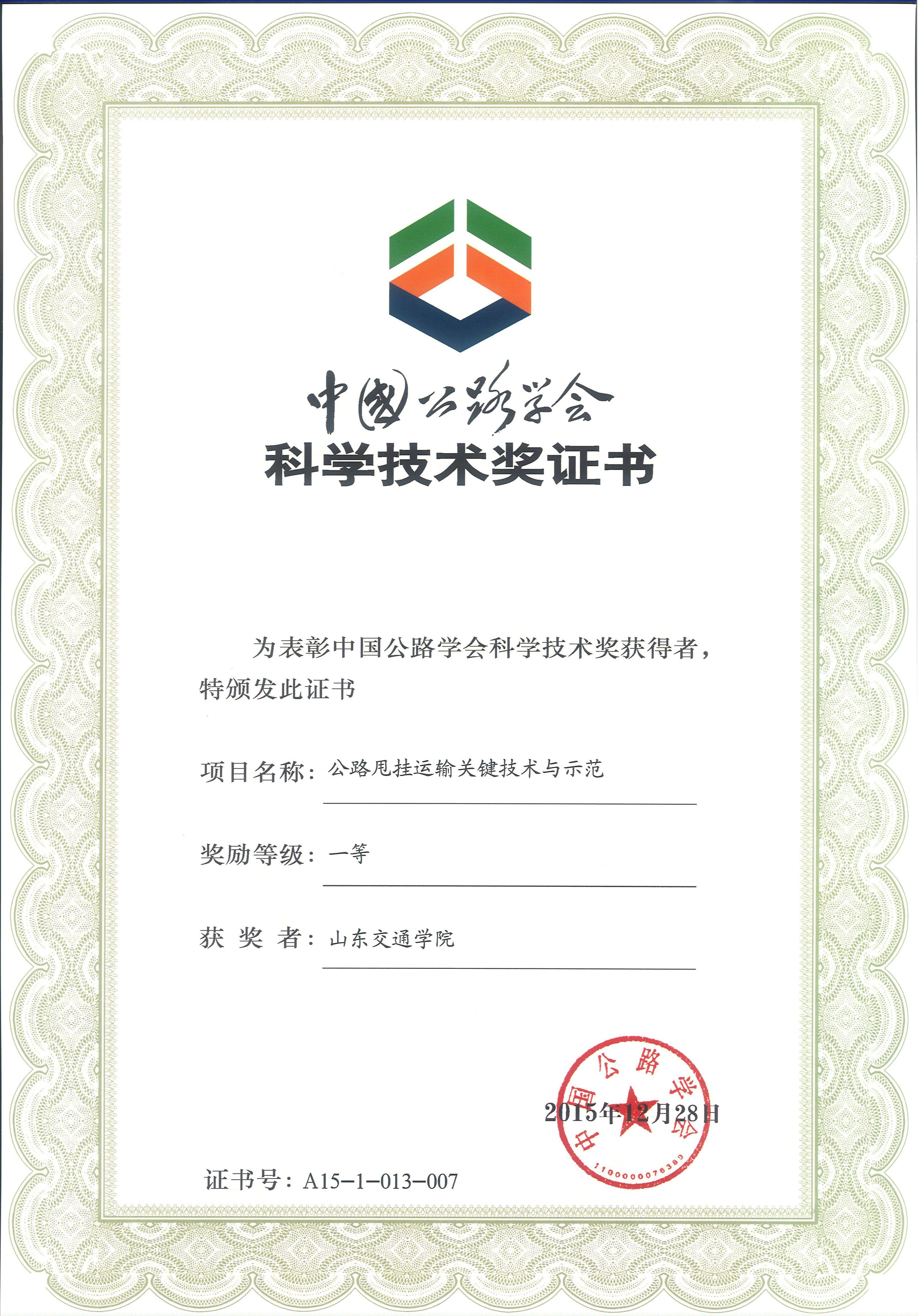 “中国公路学会科学技术奖”由国家科学技术奖励工作办公室批准设立,是面向全国公路交通行业的权威科技奖项。(科研处 交通与物流工程学院 文图/许振峰)