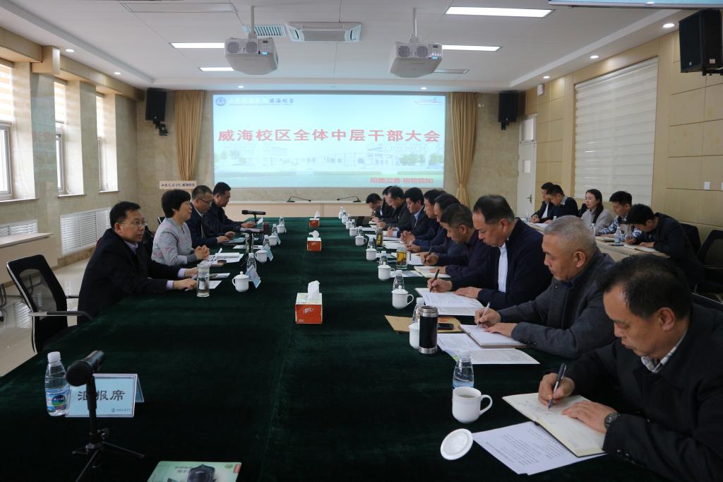 3月18日,学校在威海校区第一报告厅召开全体中层干部大会。学校党委书记孙秀丽,副院长、威海校区党委书记、管委会主任李贞涛,副院长姜华平出席会议并讲话。会议由孙秀丽主持。