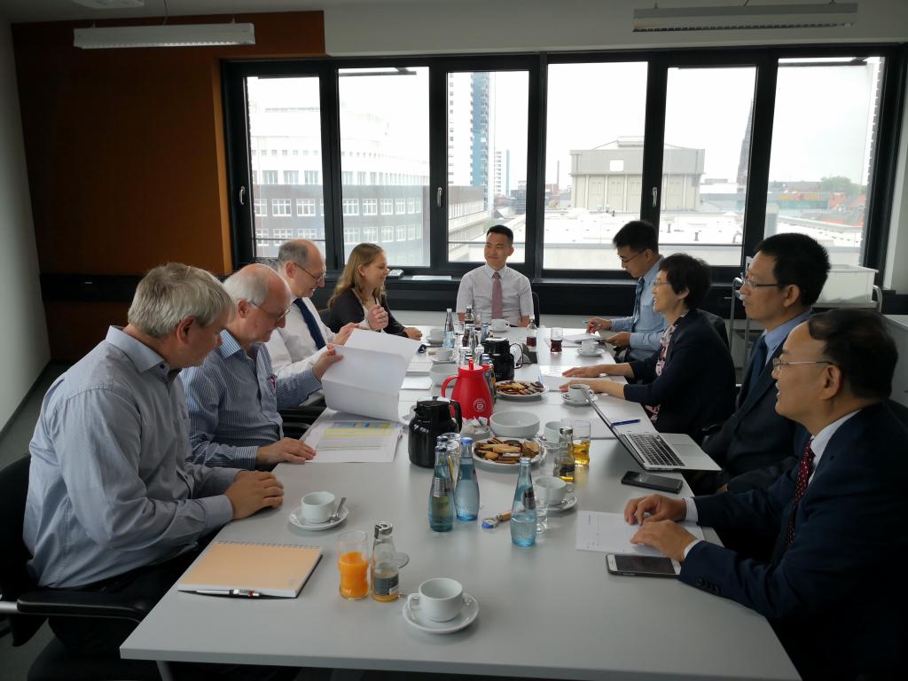 在德国,代表团首先访问了德国不来梅哈芬应用技术大学,与副校长Gerhard Feldmeier、控制系统工程教授Kai Muller、自动化与电气工程学院教授 Karsten Peter、国际处协调员Tina Frormann进行交流。双方高度认同目前正在执行的3+1+2”嵌入式系统项目,并对即将开展的“电气工程”和“轮机工程”专业项目达成合作意向,下一步将推动项目双方合作协议的签署。徐晓红代表济南市政府转交济南市政府外事办公室邀请不来梅哈芬政府官员参加9月份泉水节的函件,希望通过两校合作,带动两个城市间的交流与沟通。会后,代表团在Gerhard Feldmeier的陪同下,参观了船舶与轮机工程实验室,与轮机工程学院院长Roland沟通了后续开展的轮机工程专业合作交流项目;参观了不来梅哈芬集装箱货运港口由中国三峡公司控股的WindMW公司、梅赛德斯奔驰公司不来梅工厂等德方高校合作单位,深入了解其校企产教合作模式。徐晓红还与在该校就读的我校学生进行亲切交谈,了解学生在德学习和生活情况。