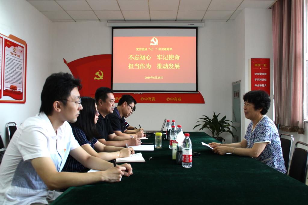 在建党98周年即将到来之际,为贯彻落实习近平新时代中国特色社会主义思想和党的十九大精神,为即将开展的“不忘初心、牢记使命”主题教育做好充分的准备,6月28日,党委书记孙秀丽为组织部党支部全体党员上党课。