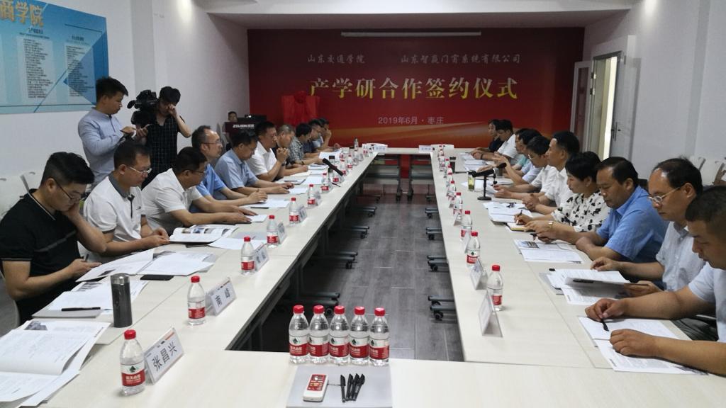 姜华平对薛城区委、区政府和企业的热情接待表示感谢,介绍了学校的发展历史、专业特长、技术优势等。他指出,将进一步加强和智赢公司的密切合作,推动校企深度合作、协同创新,实现互惠互补。薛城区委常委、组织部长刘真政致欢迎辞并介绍了薛城区经济总体情况,同时表示本次智赢公司和我校的校企合作是推动薛城区经济发展的一件大事、喜事,薛城区后续将为合作双方提供坚定支持。山东智赢门窗系统有限公司董事长王令军简要介绍了公司的基本情况,向我校对此次合作的重视支持和服务队的全力协调表示感谢,同时表明下一步将利用好与我校的合作优势,提升公司综合竞争力。省文化和旅游厅二级巡视员、省民企高质量发展服务队驻枣庄一队队长付俊海简要汇报了入驻枣庄以来,服务队针对智赢公司开展的多项帮扶举措,指出我校一直致力于支持、融入地方社会经济发展,年初更是把助力新旧动能转换、助力地方经济发展作为重要工作目标。