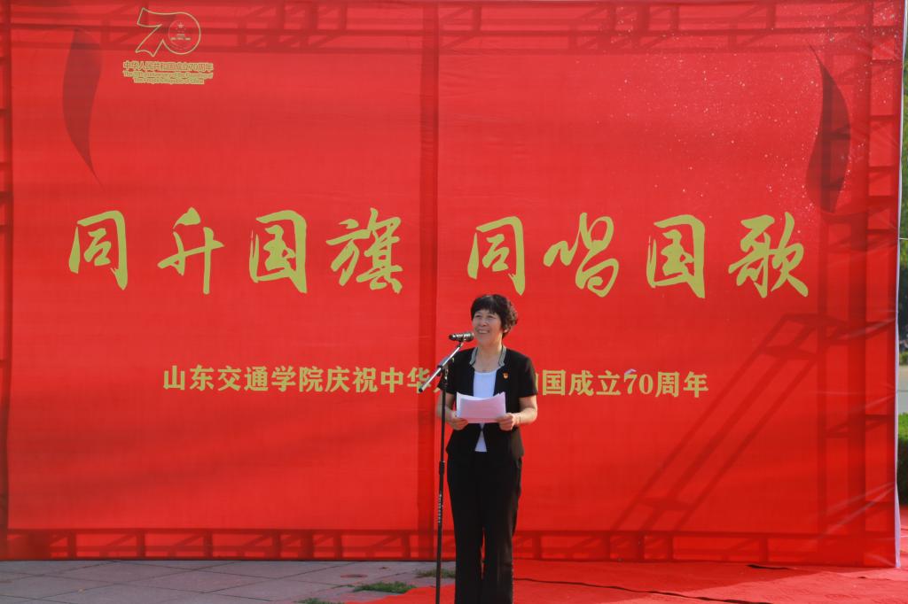 为庆祝中华人民共和国成立70周年,激发全校师生爱国之情、报国之志,根据学校“不忘初心、牢记使命”主题教育的部署安排,9月29日上午,学校“同升国旗、同唱国歌”主题教育活动在长清校区举行。学校领导孙秀丽、陈松岩、唐勇、徐晓红、李贞涛、孔祥云、范玉斌、孟庆旭出席活动。活动由团委书记周颜玲主持。