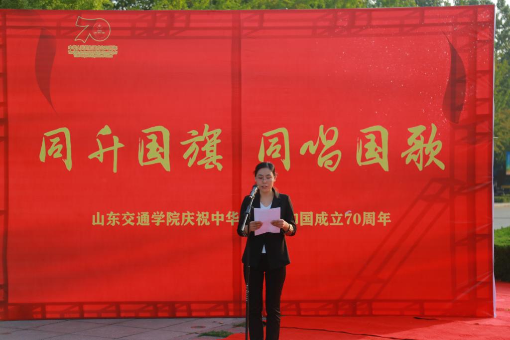 升旗仪式结束后,诗朗诵《泱泱华夏、吾辈当自强》表达了交院学子对中华人民共和国70年砥砺奋斗、70年艰苦创业、70年改革创新所取得的巨大成就的骄傲与自豪,表达了青年学生为祖国繁荣富强贡献力量的信心与决心。