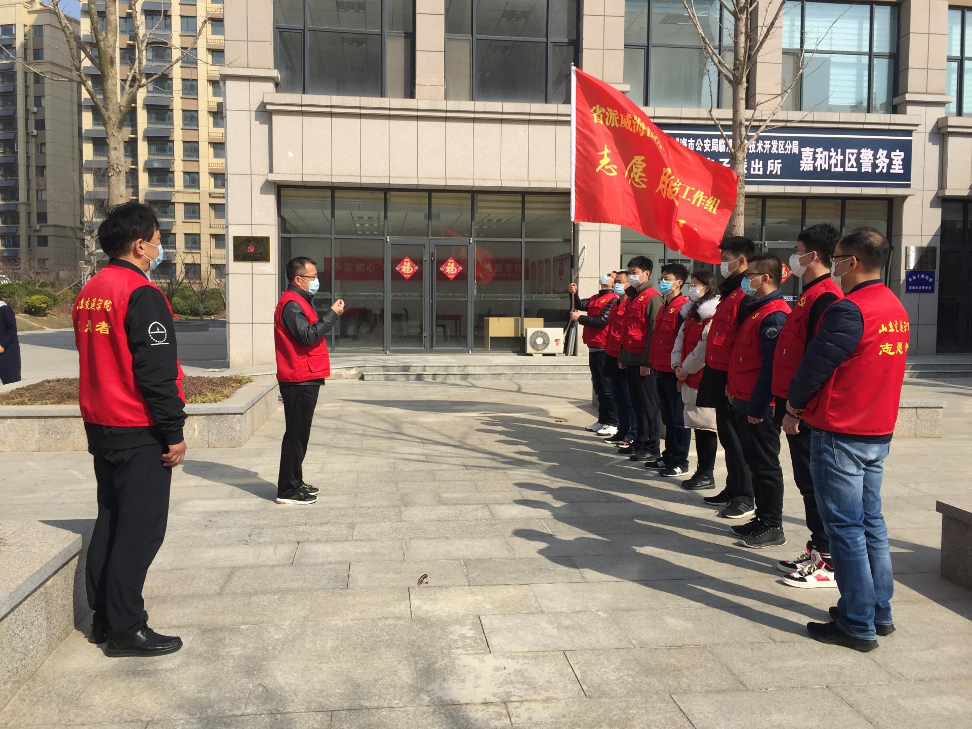 为全面落实省派工作组“四进”攻坚任务,缓解基层防疫人员不足的困难,切实做好基层疫情防控工作,3月18日上午,省派威海山东交通学院工作组牵头成立志愿服务队,在临港区草庙子镇嘉和社区举行成立仪式。工作组组长李贞涛为志愿服务队授旗,并要求服务队成员要严格做好自身防护,脚踏实地,履职尽责,积极配合乡村和社区做好疫情防控工作。