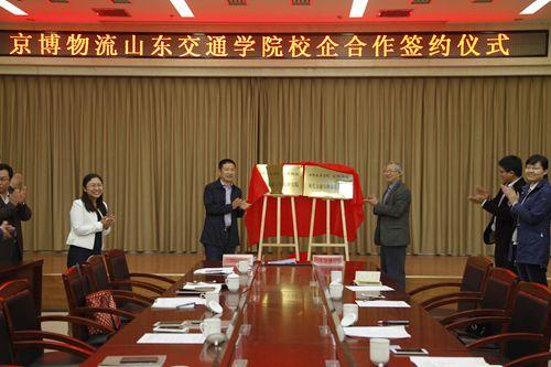 孙云早致欢迎辞,介绍了我校近年来发展概况,回顾了我校在相关领域与山东京博控股集团合作取得的成绩,对合作协议签署后双方的深入合作提出了构想,期待双方能够牢牢把握危化品物流、智能物流等新经济领域的重大机遇,共创佳绩。京博物流总经理吴加宝介绍了公司生产情况,期待与我校在新的合作平台上,在科研、人才培养、省级高校重点实验室共建、高端人才引进等方面开展全方位、深层次的合作。随后,孙云早和吴加宝分别代表双方签署了合作协议并为山东交通学院—京博物流现代交通与物流研究院、现代交通与物流培训学院揭牌。