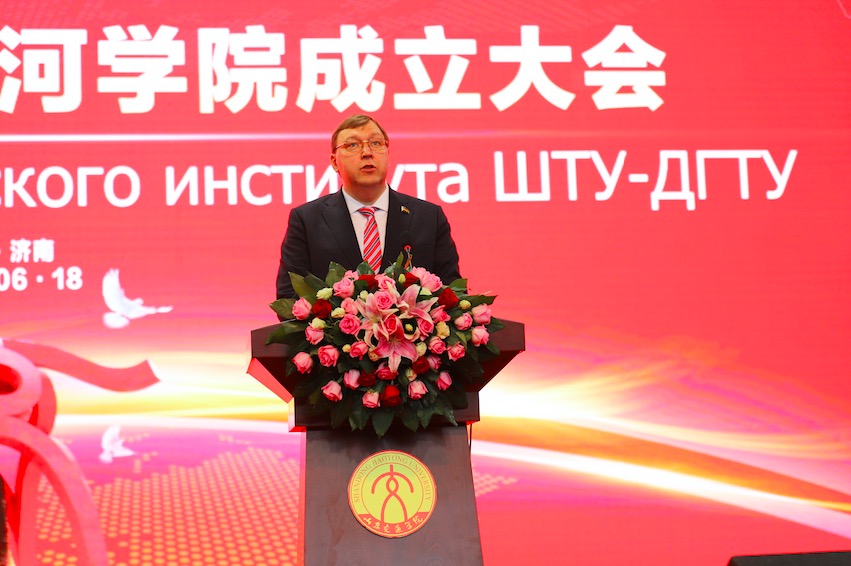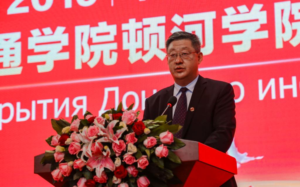 于杰致辞。他指出,山东正在推进现代化教育强省建设,鼓励省内高校与国外高水平大学开展多种形式合作,实现优势教育资源的“强强联合”。他希望,顿河学院要坚定不移地走内涵式发展道路,办出特色、办出水平,早日建成特色鲜明、世界一流的国际学院。