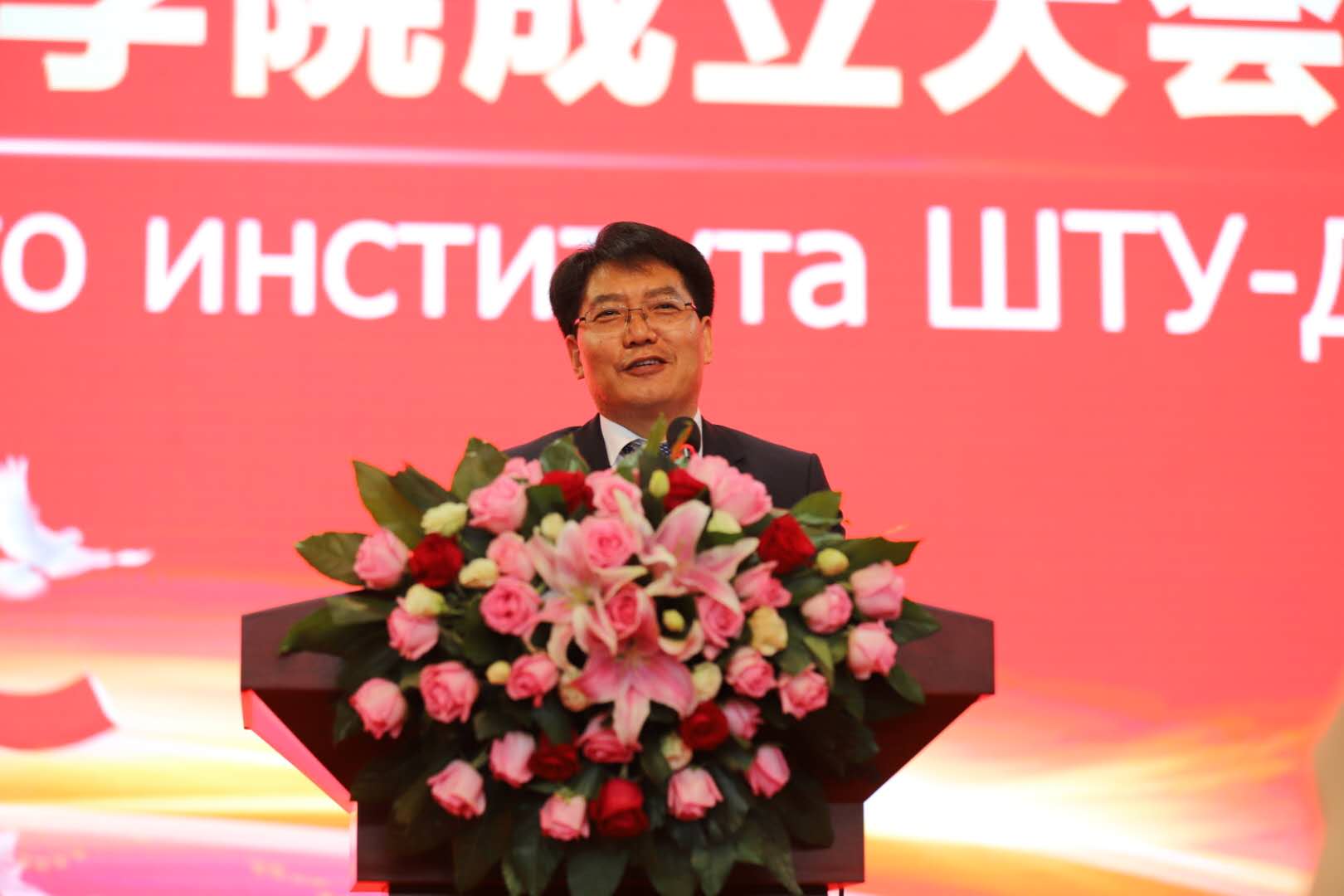 俄罗斯罗斯托夫州立法议会主席伊辛科•亚历山大•瓦连京诺维奇、俄罗斯罗斯托夫州州政府第一副州长古西科夫•伊戈尔•亚历山德罗维奇、俄罗斯驻华大使馆一秘波兹尼亚科夫•伊戈里•亚历山德罗维奇、顿河畔罗斯托夫市市政府分管文化教育事务副市长科茹霍娃•叶莲娜•尼古拉耶夫娜、顿河国立技术大学校长梅什西•贝西克•乔霍耶维奇、俄罗斯国家科学院院士马季绍夫•根那季•格里戈里耶维奇一行15人;乌克兰工程院院士、乌克兰交通科学院院士安德烈•别拉金斯基,乌克兰国家工程院外籍院士黄勇;山东省人民政府副省长于杰,山东省政协副主席王艺华,山东省委教育工委常务副书记、山东省教育厅厅长、党组书记邓云锋,山东省交通运输厅一级巡视员刘福臣,山东省人民政府外事办公室副主任李永森,济南市人民政府副市长王京文,长清区区委书记王勤光;学校领导孙秀丽、陈松岩、唐勇、徐晓红、李贞涛、孔祥云、范玉斌、姜华平出席本次揭牌仪式并在前排就座。俄罗斯、山东省、济南市、长清区等各级各方有关人员、学校全体中层干部和师生代表共计1500余人参加大会。