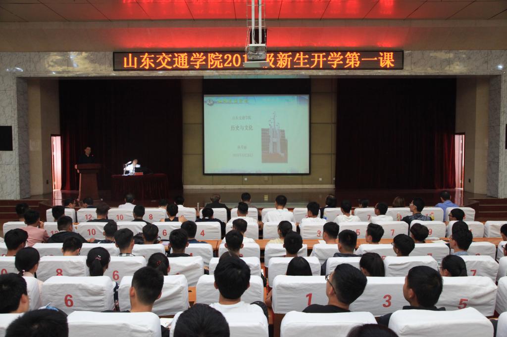 9月26日下午,学校长清校区学术报告厅内座无虚席,500余名2018级新生代表迎来了“开学第一课”。党委书记孙秀丽以“学校历史与文化”为主题,结合自己近30年的大学工作经历和人生经验,与同学们溯源交院历史,概览今日交院,并深情寄语这群即将开启人生新篇章的“新交院人”,带来了一堂十分重要、十分必要的思想政治课,也带来了一场高水平的历史文化盛宴。党委宣传部部长娄进举主持新生第一课。各学院分党委(党总支)书记、副书记,全体新生辅导员和新入职辅导员一起聆听了课程。