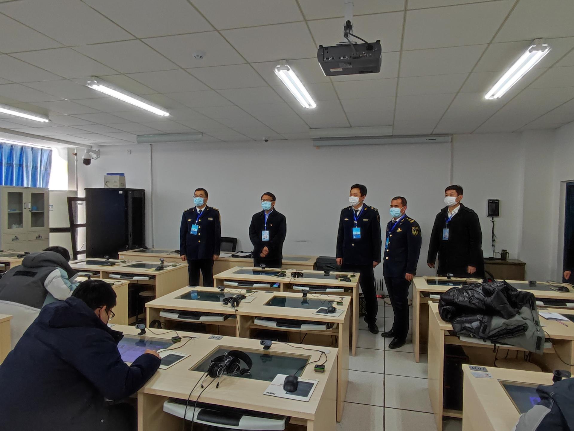 巡查中,姜华平对尹磊一行表示欢迎,对威海海事局直面疫情防控的严峻形势和历时半个多月733名考生1500人次的繁重考试任务,周末无休加班加点确保考试任务提前完成,让全体考生分批有序、错时错峰安全离校表示感谢。威海校区管理办公室社会服务部负责人汇报了我校第05220102、05220118期全国海船船员适任证书考试评估的疫情防控及组织开展情况。尹磊对我校大规模的海船船员适任考试工作组织有序、严格落实各级疫情防控要求措施到位、考场秩序井然有序、考风考纪严肃端正给予高度评价,希望学校进一步加大疫情防控排查力度,做好综合演练,确保考生安全和考试顺利进行。