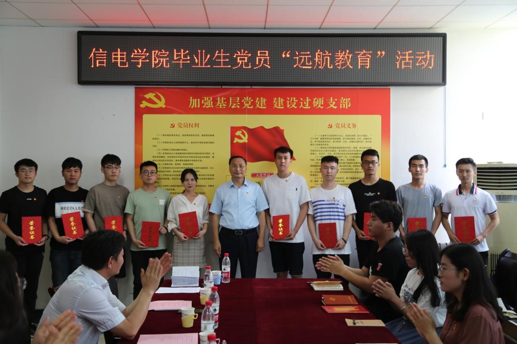 为进一步增强毕业生党员的党性修养和廉洁自律意识,引导他们走好职场第一步,6月12日,信息科学与电气工程学院举办毕业生党员“远航教育”活动。学校党委委员、纪委书记范玉斌应邀出席活动,信息科学与电气工程学院分党委书记魏丙刚、副书记张玉霞,辅导员、毕业生党员、主要学生干部参加活动。