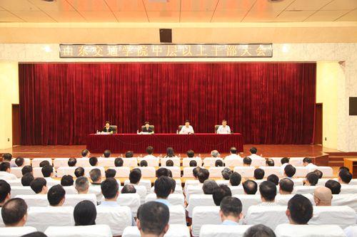 7月14日上午,学校在长清校区学术报告厅召开中层以上干部大会,宣布省委关于学校领导班子调整的决定。
