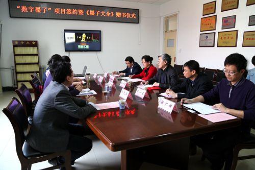 邵长婕代表赠书单位讲话,介绍了中国墨子学会和墨研办的发展情况,并感谢学校在中国墨子网网站改版和“数字墨子”研发项目中所做的工作。“数字墨子”项目负责人介绍演示了项目的设计实施方案。
