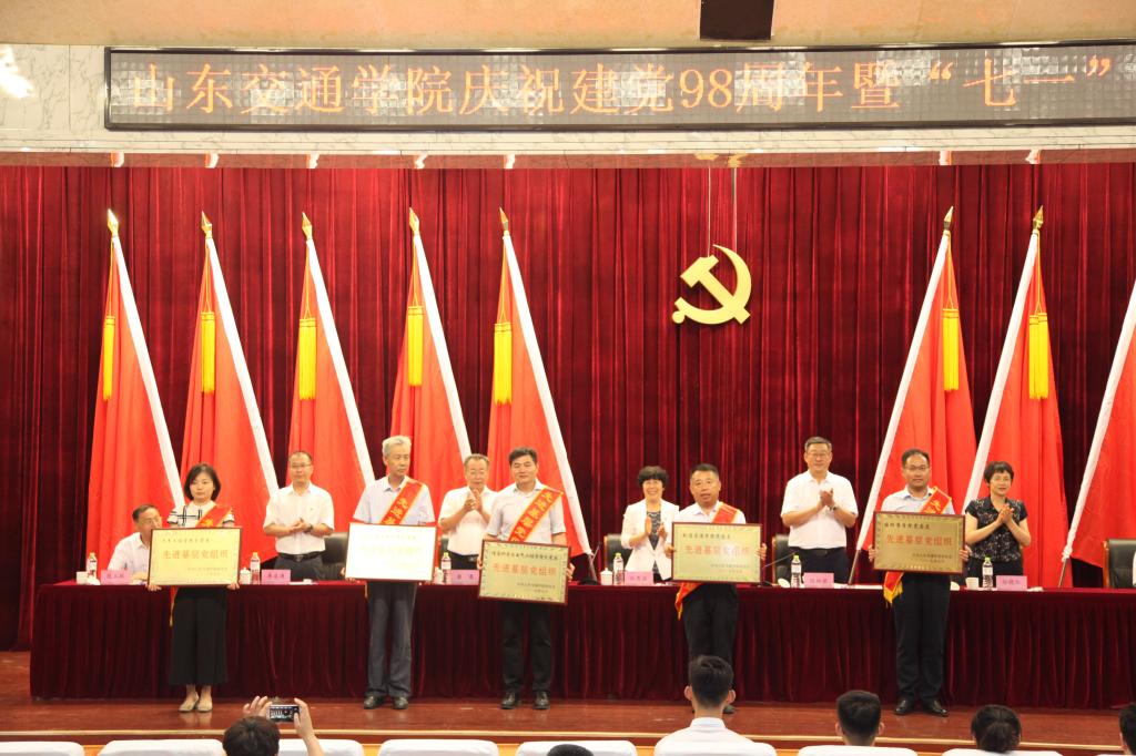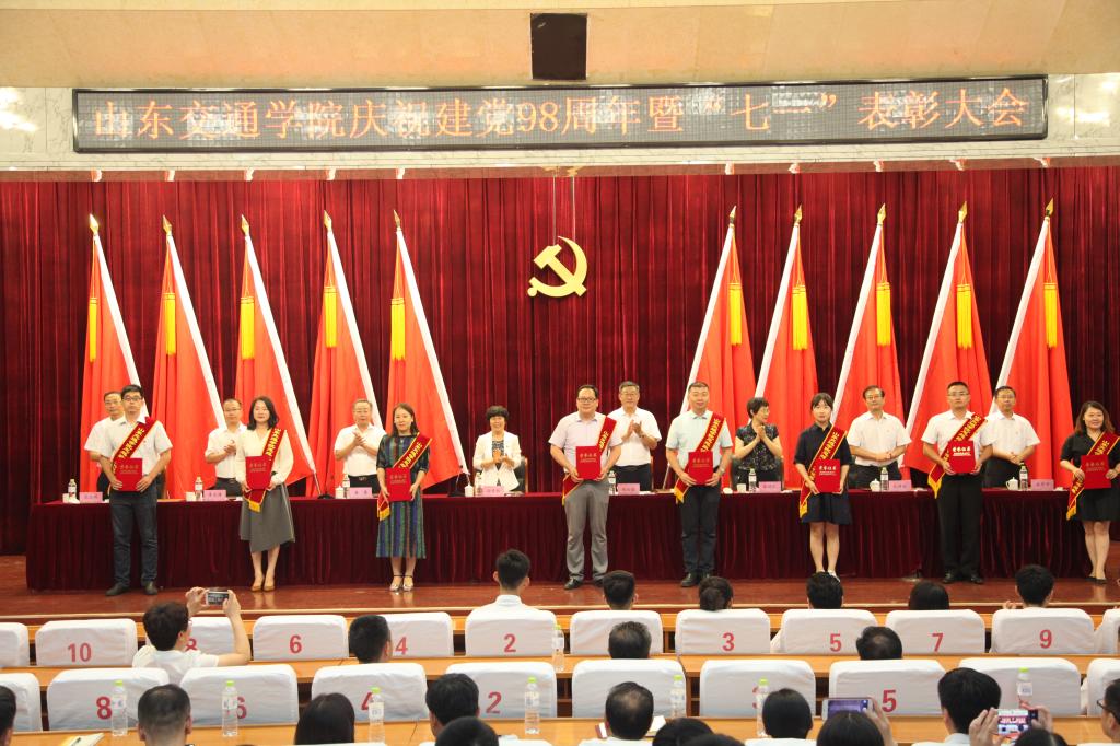 大会在庄严雄壮的国歌声中拉开序幕。会上,党委副书记唐勇宣读了《关于表彰优秀共产党员 优秀党务工作者和先进基层党组织的决定》《关于表彰山东党建工作标杆院系 样板支部 高校“双带头人”教师党支部书记工作室培育创建单位和山东交通学院首批过硬党支部决定》《关于表彰2018年度思想政治工作先进集体、先进个人和优秀成果的通报》。学校领导为受到表彰的先进单位和个人颁发了奖牌和证书,为新发展的教职工和学生党员代表佩戴了党员徽章。