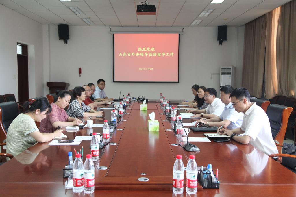 7月9日上午,山东省人民政府外事办公室党组成员、副主任孙业宝率领调研组一行5人来我校举行外事工作调研座谈会。院长陈松岩、副院长徐晓红在长清校区办公楼610接待室会见客人。国际合作交流处、外国语学院、国际教育学院、信息化建设与管理办公室相关负责同志参加了座谈。