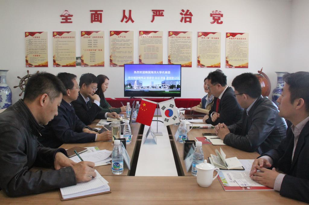 4月17日,韩国海洋大学国际法学院院长丁大一行4人到我校威海校区进行交流访问。学校副院长姜华平会见客人并主持座谈会。