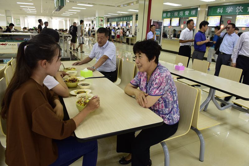 午间时分,孙秀丽、陈松岩来到刚刚投入使用的学生餐厅,并与学生进行亲切交谈。“从哪里来的啊?”“在学校有什么不适应的吗?”“还有什么困难吗?”“食堂的饭菜合不合胃口?”……在询问中,学校领导亲切了解学生的家庭情况和生活状态,听取对餐厅饭菜质量、价格以及服务态度等方面的看法,叮嘱学生照顾好自己,尽快适应大学生活。