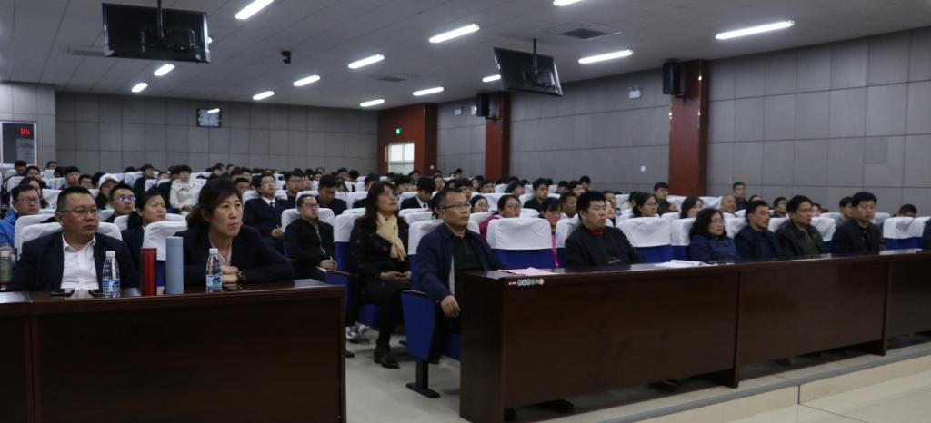 威海校区管委会成员,威海校区机关部门主要负责人,二级学院相关负责人和学生代表共计200多人参加报告会。