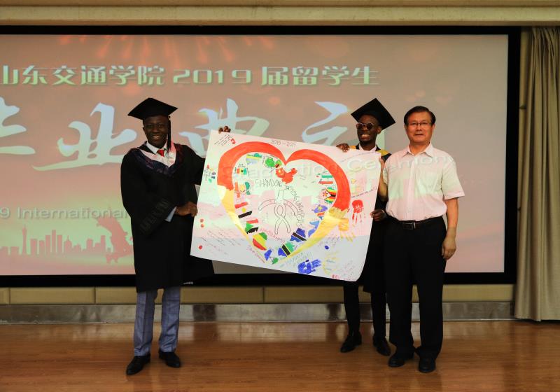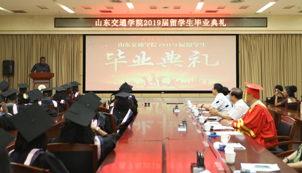 6月26日下午,2019届来华留学生毕业典礼暨学位授予仪式在长清校区报告厅会议室举行,来自14个国家的29名留学生顺利毕业并获得学士学位。院长陈松岩,副院长徐晓红、孔祥云出席了毕业典礼。国际交流合作处、交通土建工程学院、工程机械学院、信息科学与电气工程学院、外国语学院院和国际教育学院相关负责人参加了毕业典礼。