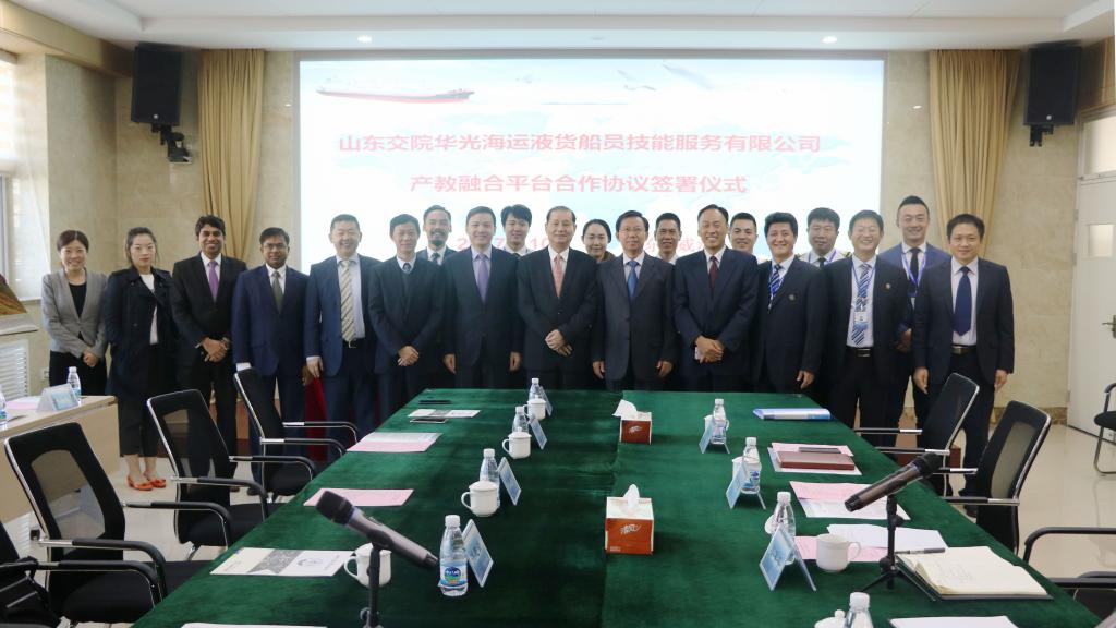 最后,姜华平与洪惠崙共同为“山东交院华光海运液货船员技能服务有限公司”产教融合平台揭牌。
