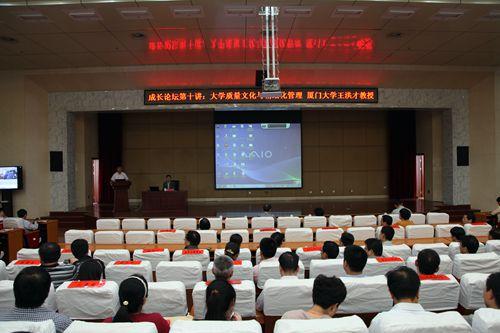 9月29日下午,我校“成长论坛”第十讲在长清校区学术报告厅举办。厦门大学教育研究院教授、博士生导师王洪才应邀作了题为“大学质量文化与精细化管理”的报告。我校党委书记孙秀丽,院长鹿林,党委副书记、纪委书记唐勇,副院长孙云早、陈松岩出席并全程聆听了报告。报告会由孙云早主持。
