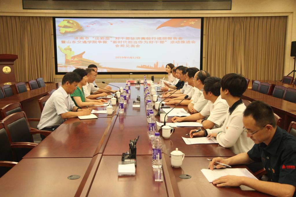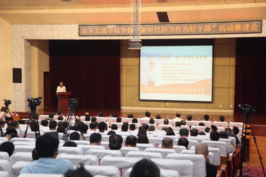 在全党开展“不忘初心、牢记使命”主题教育之际,6月12日下午,济南市“出彩型”好干部驻济高校行巡回报告会暨山东交通学院争做“新时代担当作为好干部”活动推进会在长清校区举行。