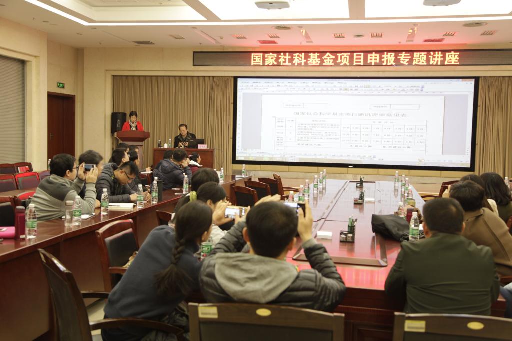 为进一步做好2018年国家“两金”项目申报工作,学校分别于11月16日和21日在学术报告厅会议室举办2018年国家社会科学基金项目、国家自然科学基金项目申报专题讲座。副院长徐晓红主持了专题讲座,科研处、各二级院部的博士、中青年教师等120余人参加讲座。
