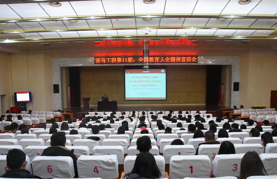12月19日下午,学校党委副书记唐勇在长清校区报告厅为“青马工程”暨第十一期团校培训学员做了题为《学习贯彻全国教育大会精神,努力成为德智体美劳全面发展的社会主义建设者和接班人——立德树人根本任务与我们的职责和使命》的讲座。团委负责人、第十一期团校培训班全体成员及学生代表400余人到场聆听。