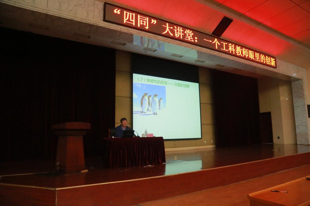 启动仪式后,轨道交通学院退休教授王旭光为2019级新生带来《一个工科教师眼里的创新》的精彩一课。他从身边事例讲起,强调创新需要道德和良知。通过列举与同学们学习生活息息相关的案例,让同学们懂得创新源自自然、源自生活,创新只有与社会需求相适应,创新成果才有活力。