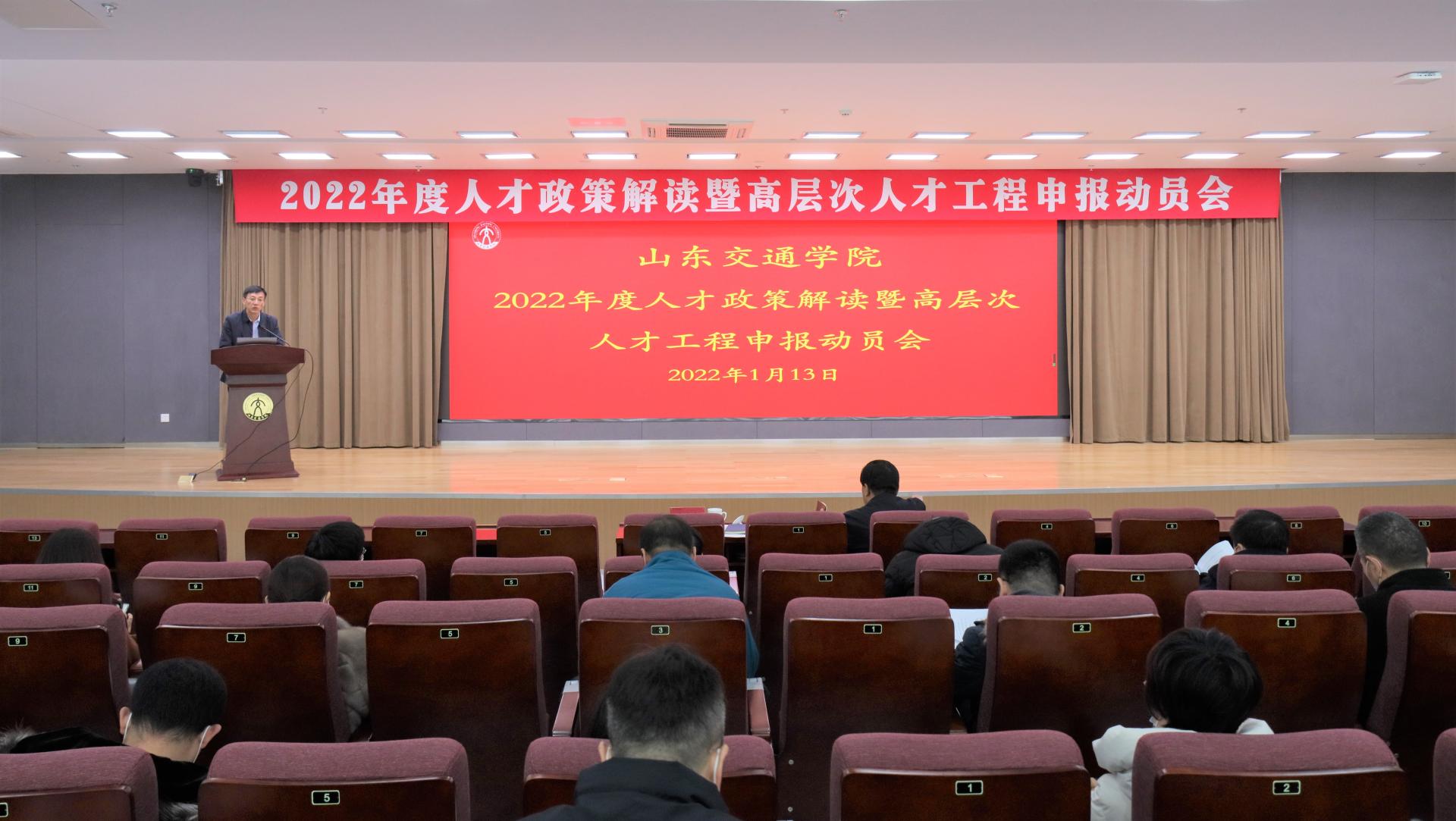 1月13日,学校在长清校区明德楼101报告厅召开2022年度人才政策解读暨高层次人才工程申报动员会。党委书记王焕斌,党委委员、副院长来逢波出席会议。会议由来逢波主持。